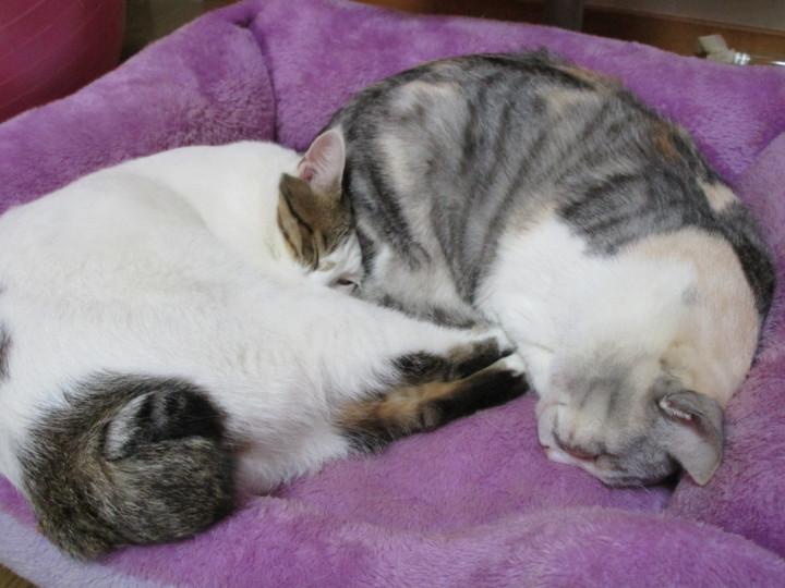 それでも少し寒かったのか、今日はほたるにくっついてお昼寝♪