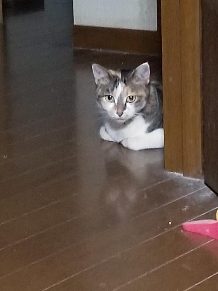 私の部屋に入りたいけど、きなこが睨みをきかせていて入れない…けど入りたい…と、複雑なゆずです(笑)