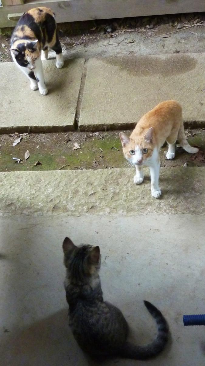 離れの飼い猫、母屋の世話猫、盗み食いする野良猫+αで、あら大変!