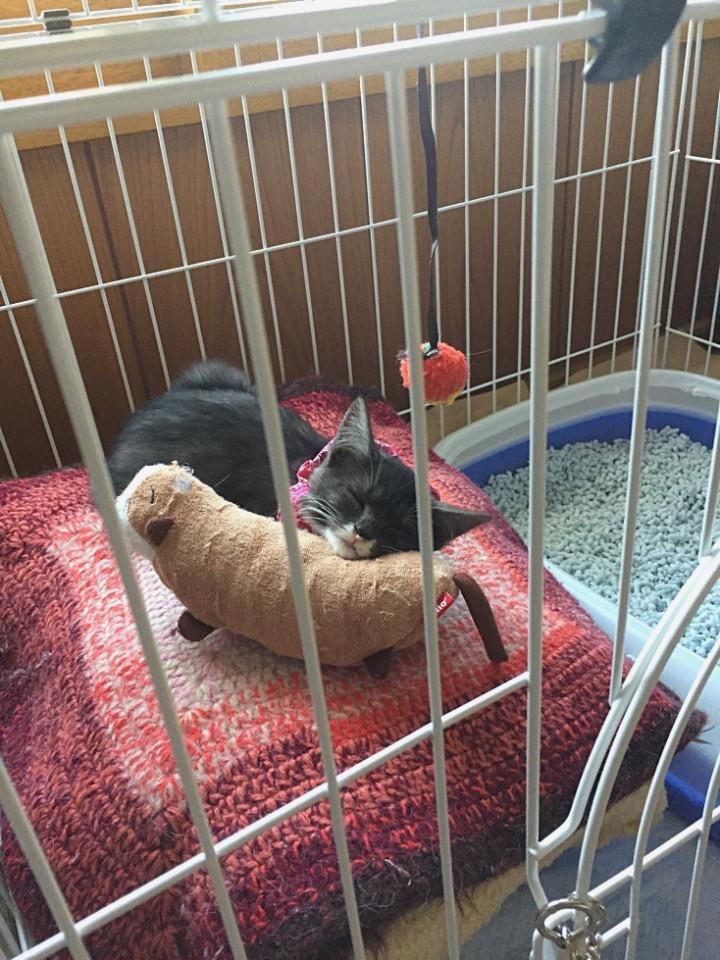 しかし、即日でつれ帰れるとは思っていなかったので、キャリーバッグしか家にはないのから、その足で勤先まで車を走らせて、大型のケージを購入しました。