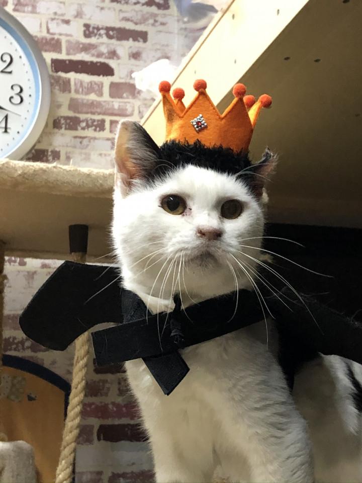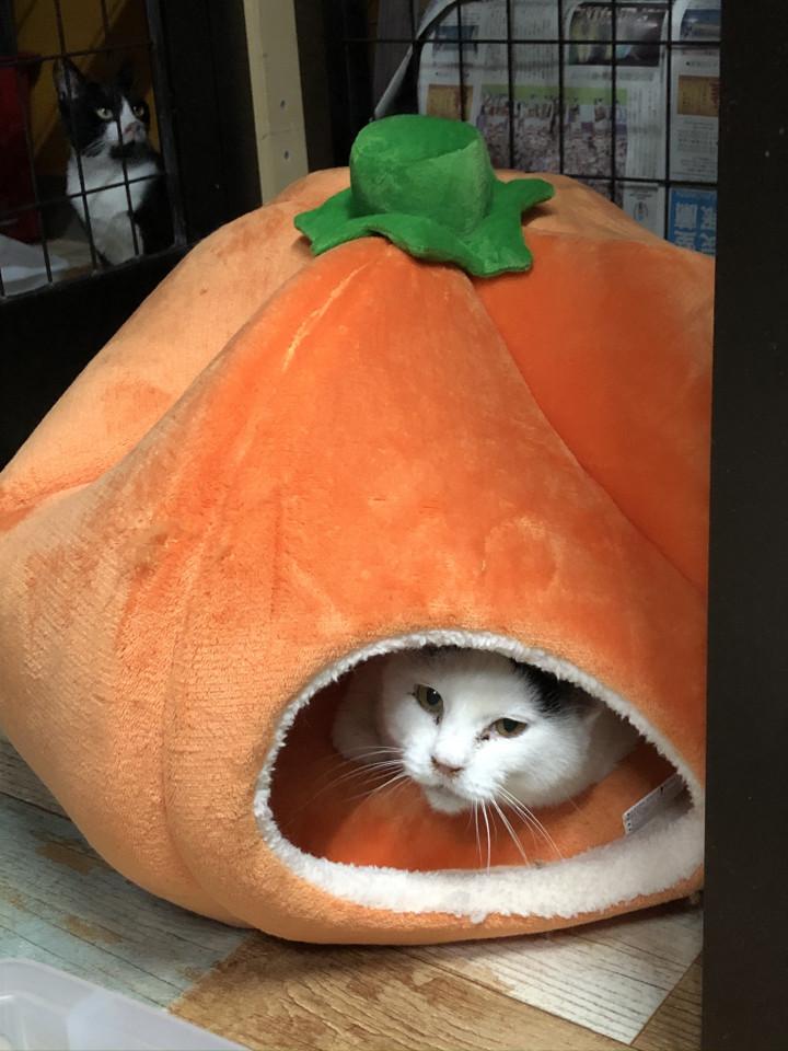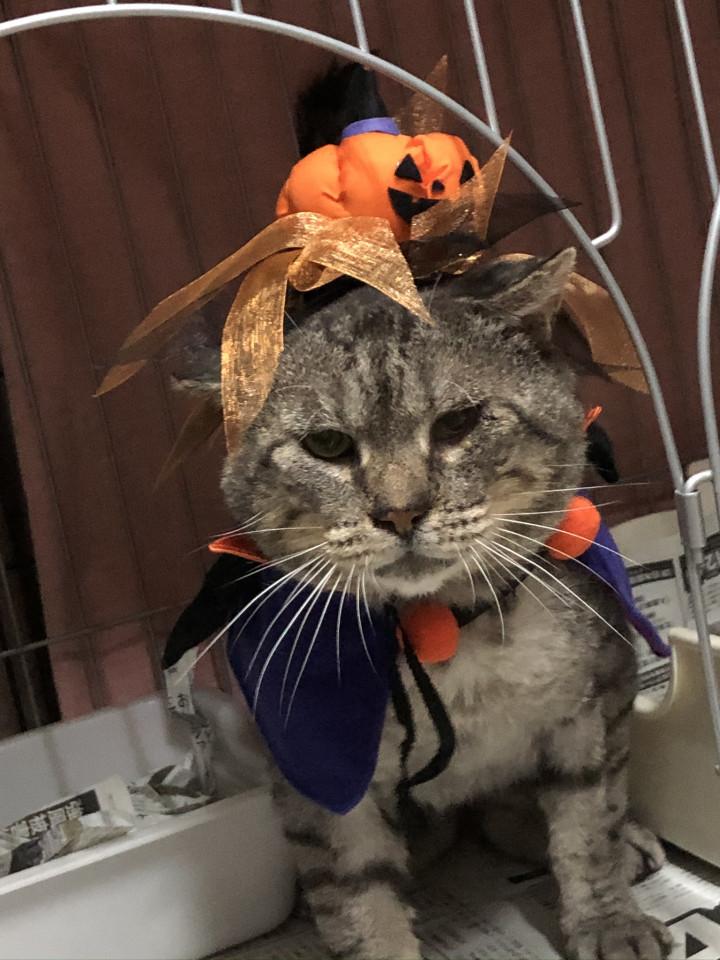 看板保護猫たちは、仮装の予行練習をしておもてなし準備をしております^ ^