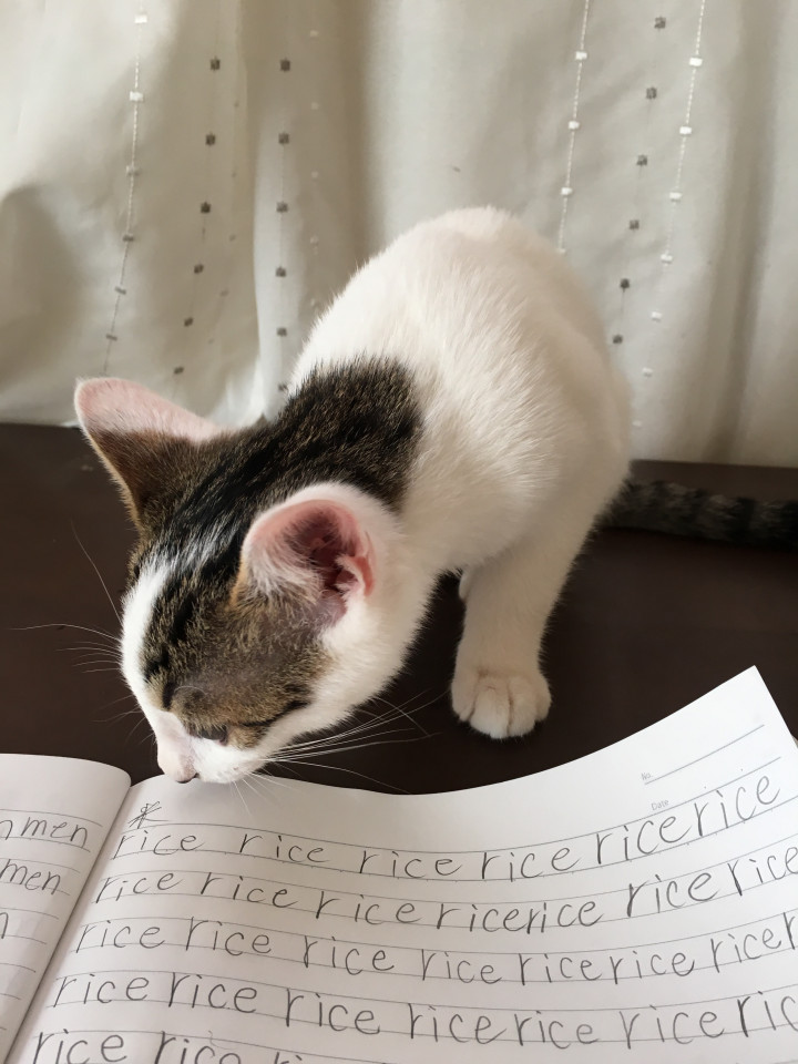 人間兄ちゃんの勉強の邪魔をするミルク笑
