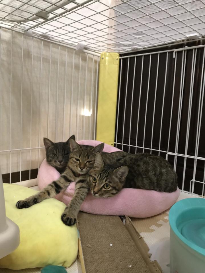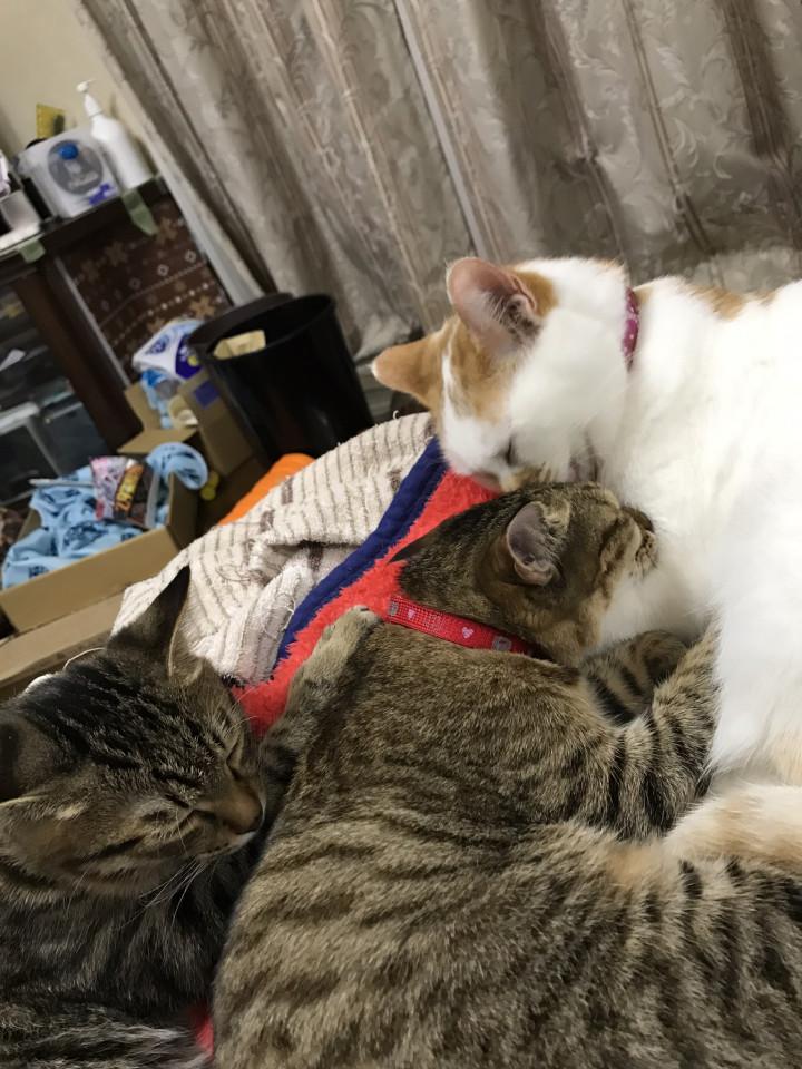 すず&はやとは仲良く3ニャンで遊んだり、ひっついて寝たりといい感じ。