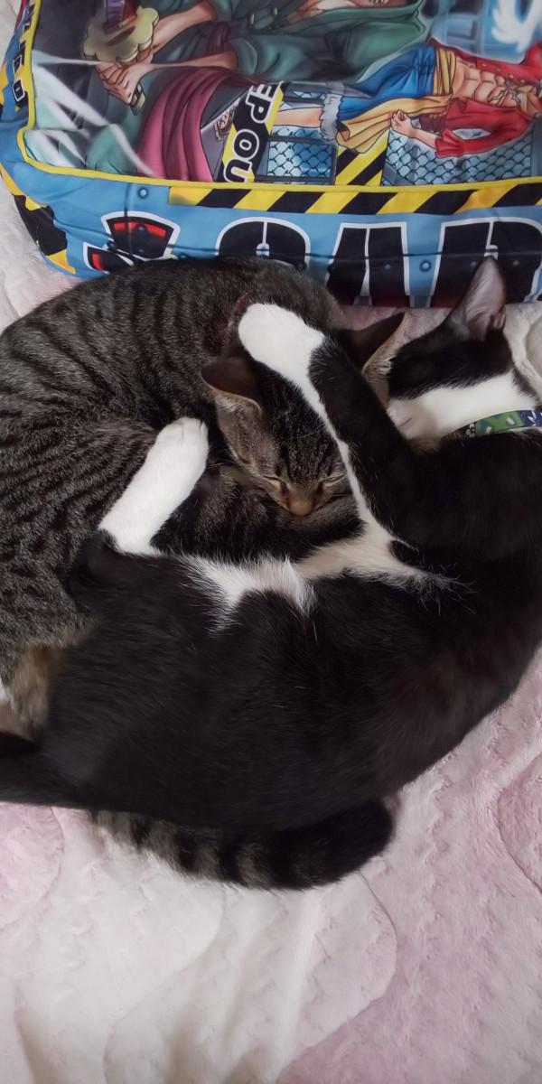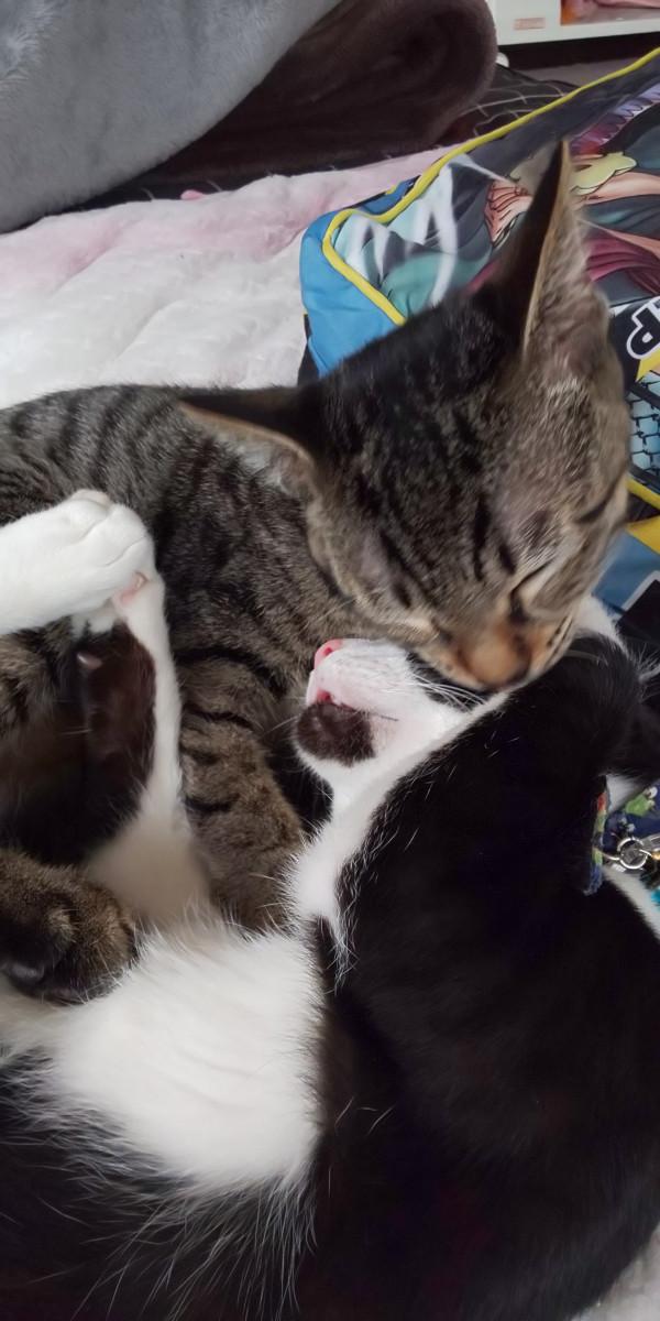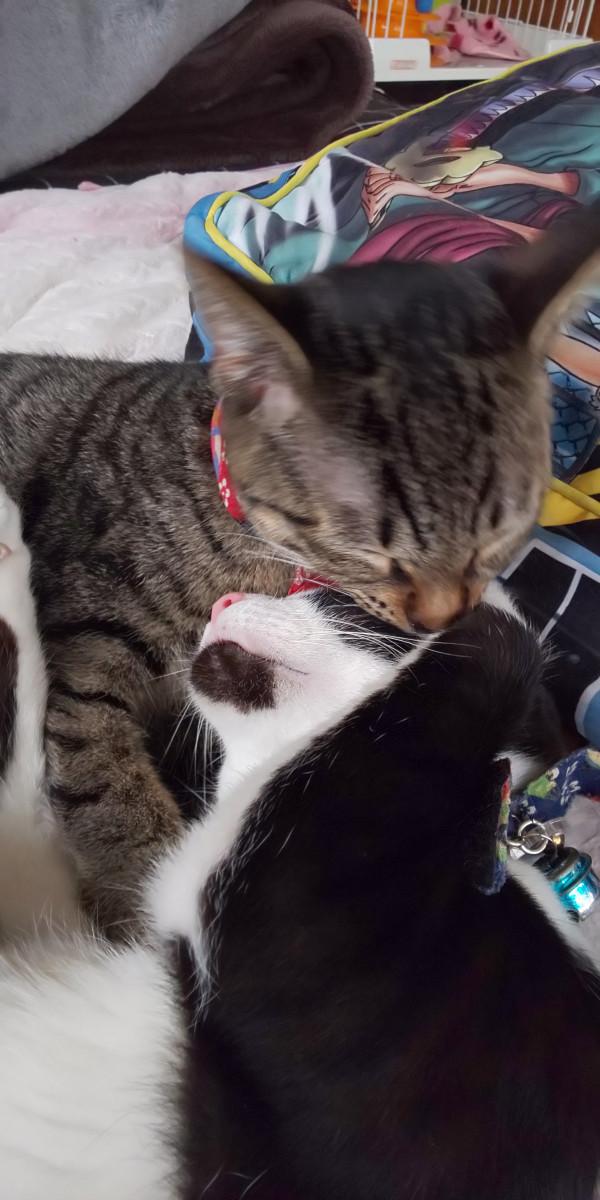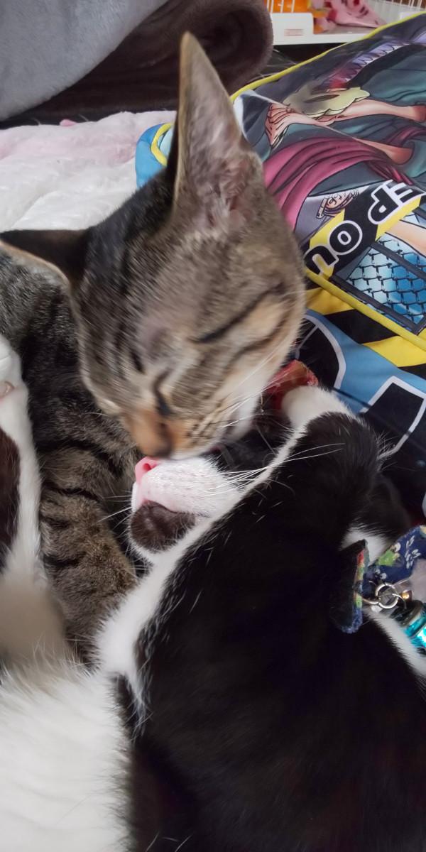 サスの毛繕いをペロペロするぴんちゃん🤭
