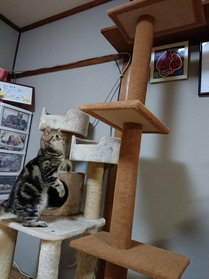 と新しく突っ張り型のスリムキャットタワー
