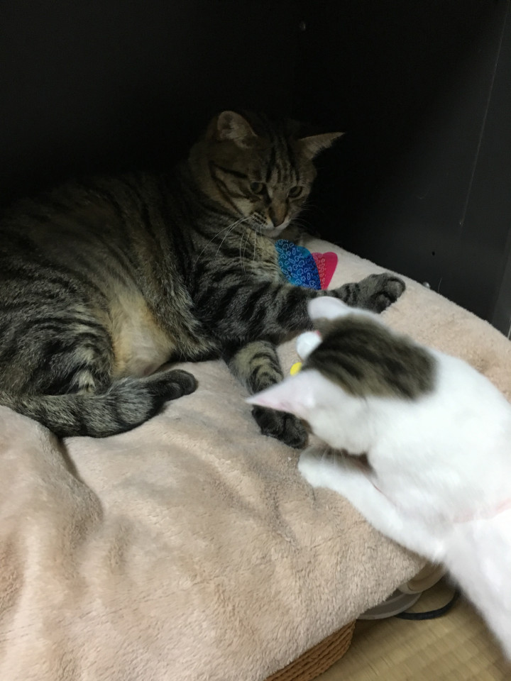主人がゲンと遊ぶつもりでいたら、ミルクが飛んで来ました笑