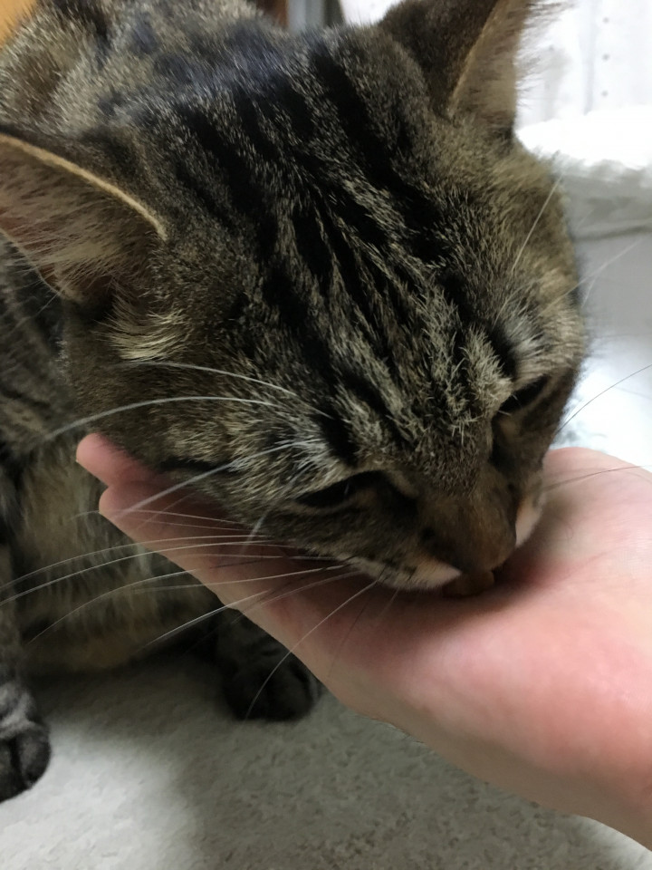 ドライフードをここまでがっついて食べる子ではないのですが、勢いが凄い😅
