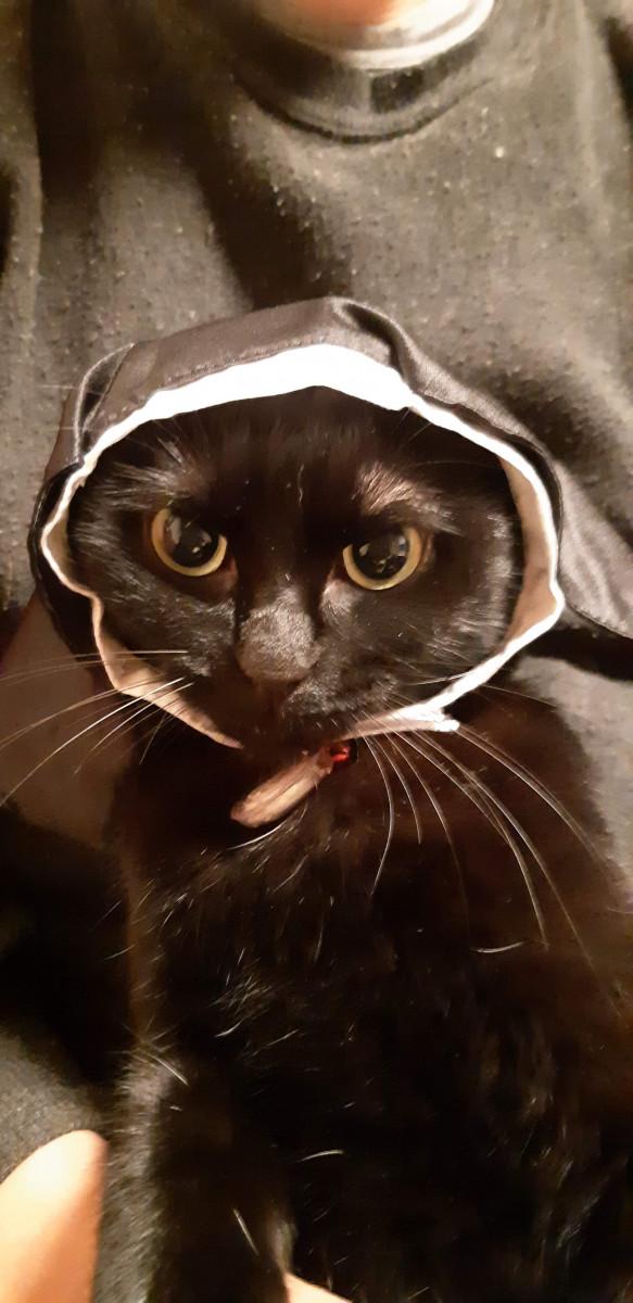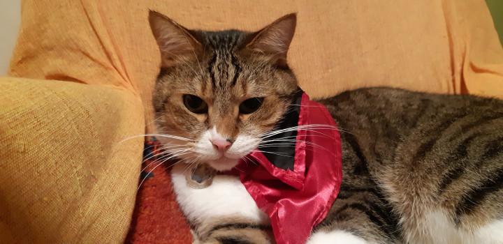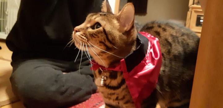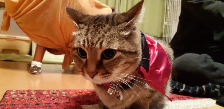 ドラくんはマントを羽織った途端へっぴり腰に。
