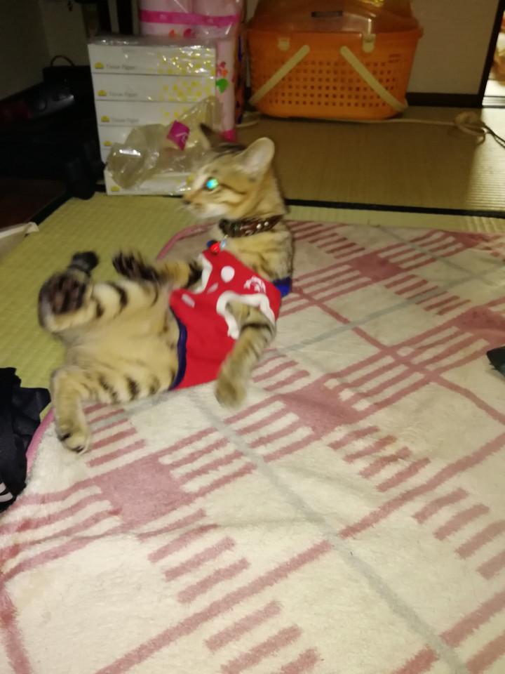 今日 初めてママに着せられた。 そうだ、ママも、爺やも着てるお洋服ってやつかな〜?モコモコ ぬくぬくだよね。 でもね〜歩きにくいんだ ママは笑ってるし、何か変… はい…可笑しいよ 1歩 歩いてはコテン オマケに モンローウォークしてますが…