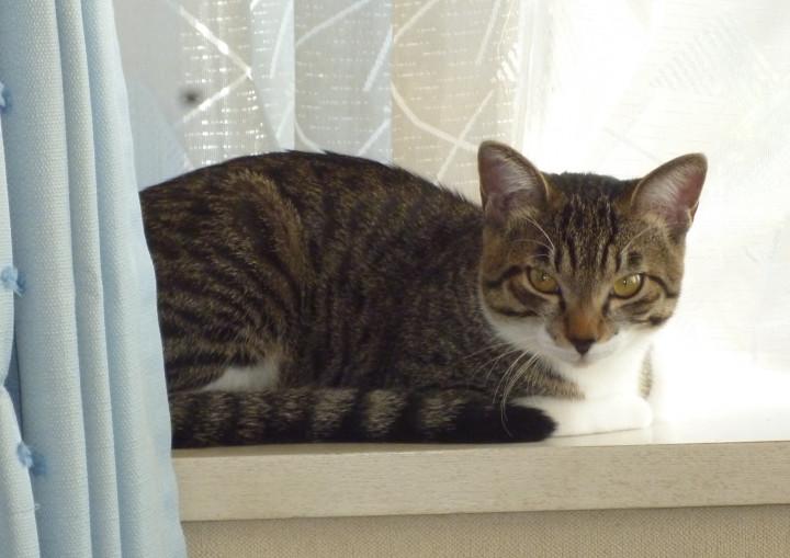 来た当初は、先住猫のハナ(H31/4/26生れ)に威嚇され涙目になってしまったリク