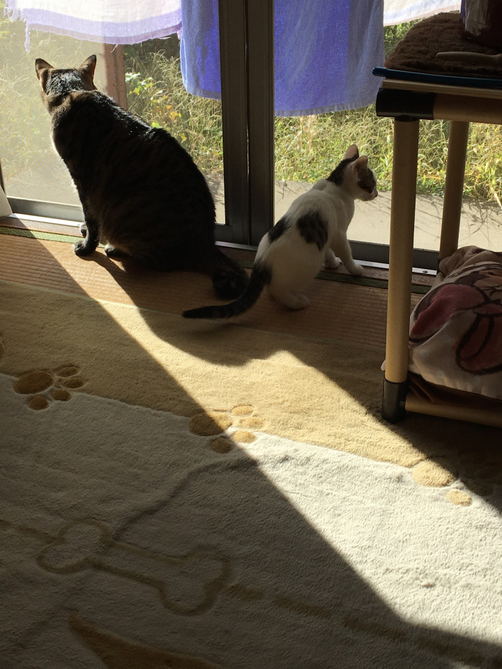 そして今朝は部屋の換気中に2匹揃って外を眺める。