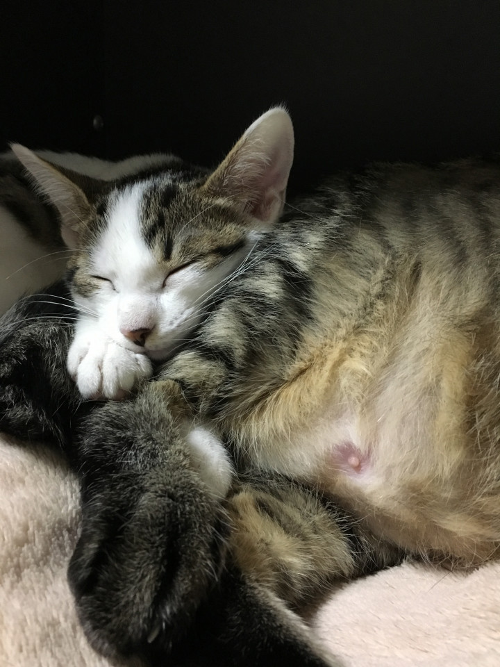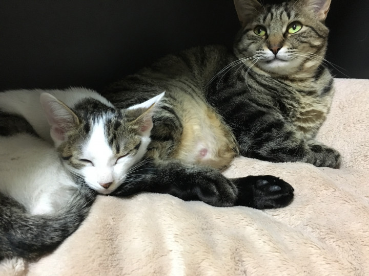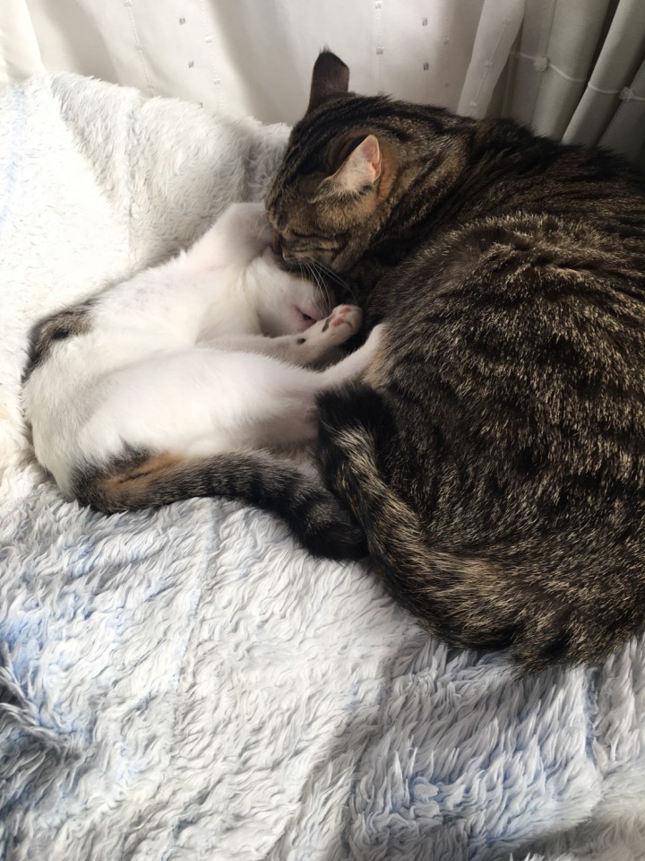 そして、こちらも分かりにくいですが、ゲンがミルクをグルーミング❗️