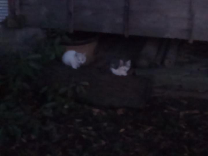 以前話した、子供会のエサやりママのとこの茶白さんが子猫を生み、この間、初めて見ました。