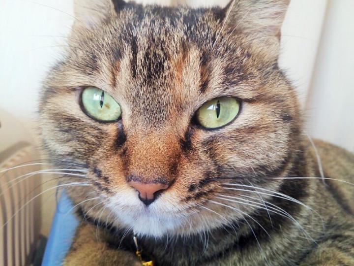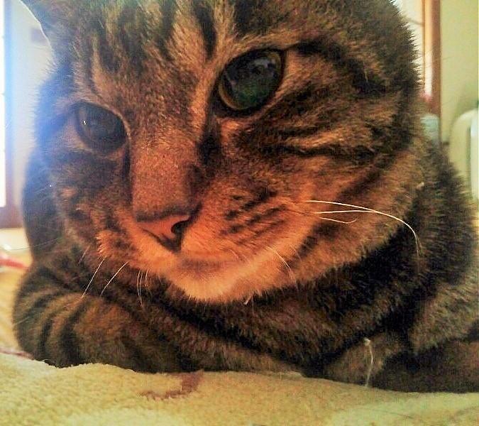 向かって左目のシミは生まれつきの模様が濃厚だそうですが