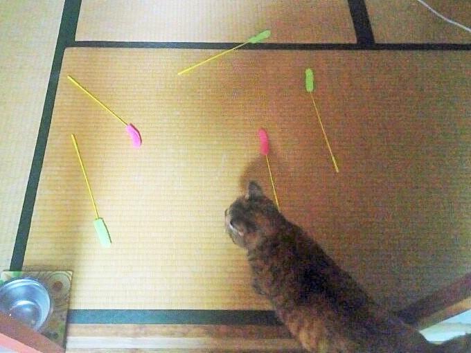 起きて一階居間に移動するも三匹が後追い&エスコートってか…じゃれてきて危ない。