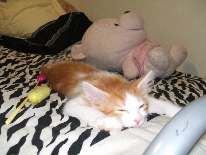 前はベットの下でビクビクしてたのに、いまぢゃ無防備でべっとの上で寝ております・・笑(*^_^*)