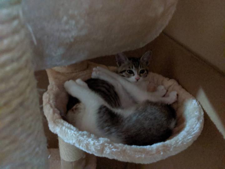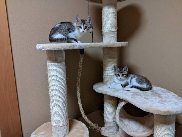 新しいキャットタワーで2匹仲良くお昼寝中です。