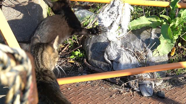手が外れなくなった子猫が心配でよってきて何をするのかなとおもいきや