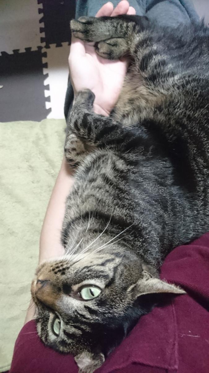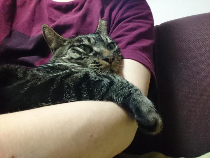 抱っこしようとしなくても、私がソファーに座れば乗ってくるし、ご飯を皿に入れようとかがんだ時も膝に乗ってくるような感じです。