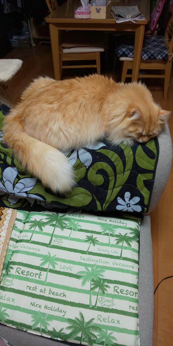 寝ることも好きです。こんなにモフモフだけどこたつの中も大好き~