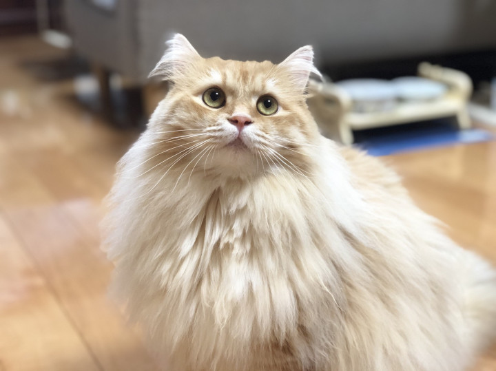 寝ていてもちゅーるちゅーるの声にはすぐ反応走って膝の上にお座りします。