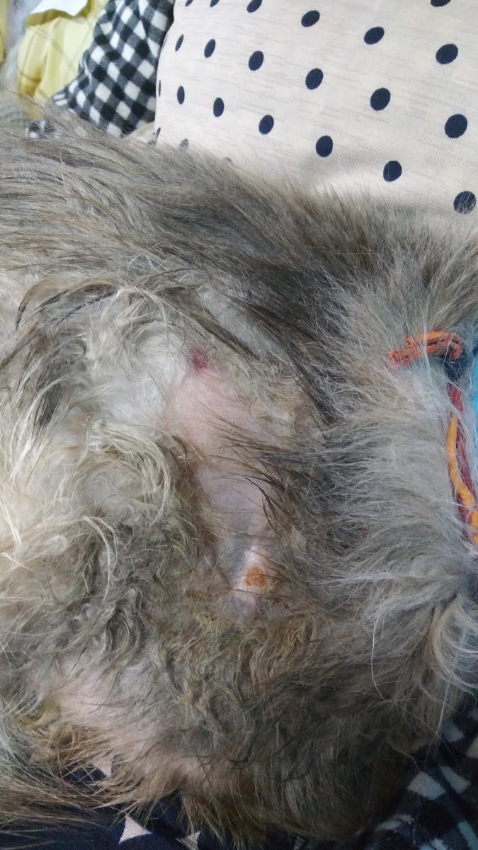 あ、写真の上の方が少し赤くなってるみたいですが、カブレだそうで、同じ薬を塗る様に先生からお達しがありました。