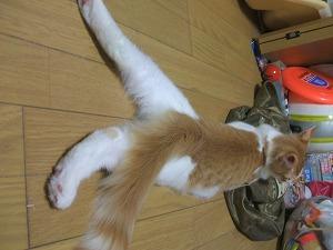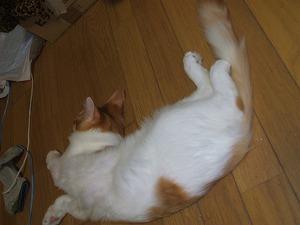 まだ子猫なので体がやわらかいらしく、体をひねりながら寝てます^^;