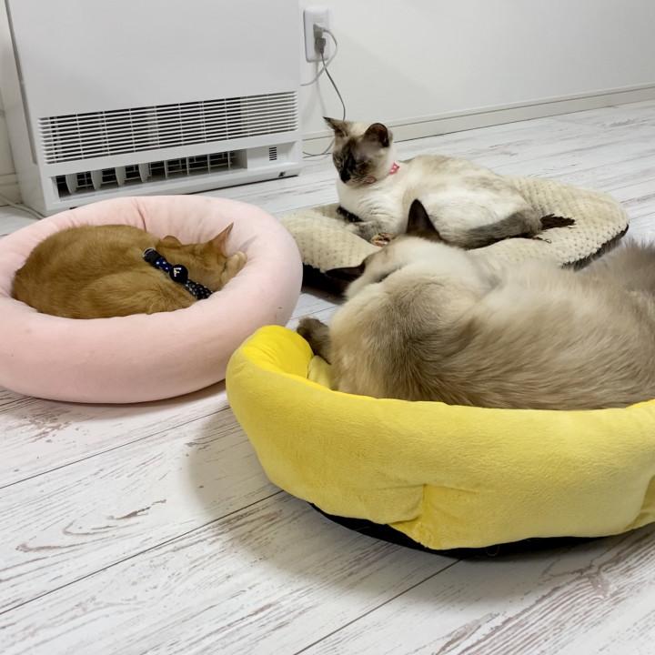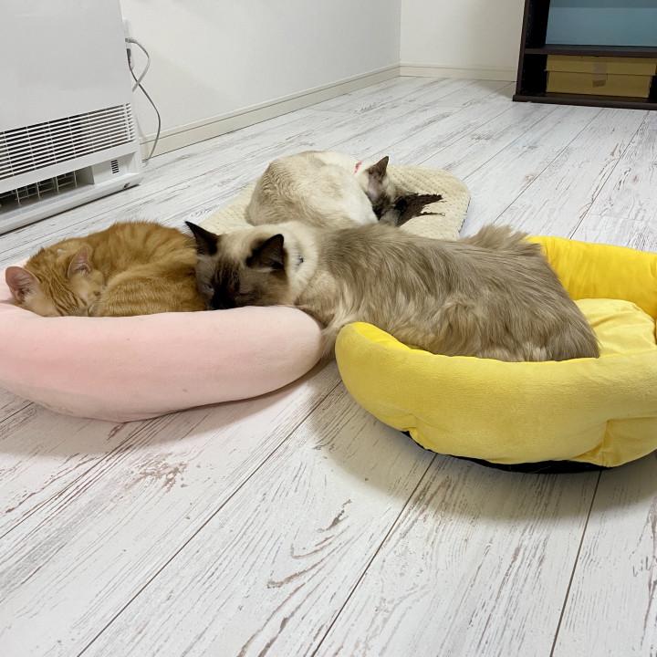みんなで分かれて暖房の前で体をベッドに埋めて寝ていると