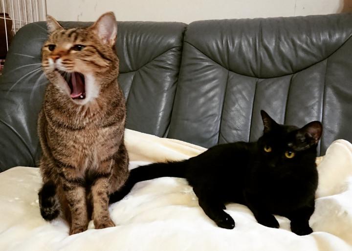 フリース素材で後で着るからとソファーに置いていたら、リオ&テオに占拠されていた。