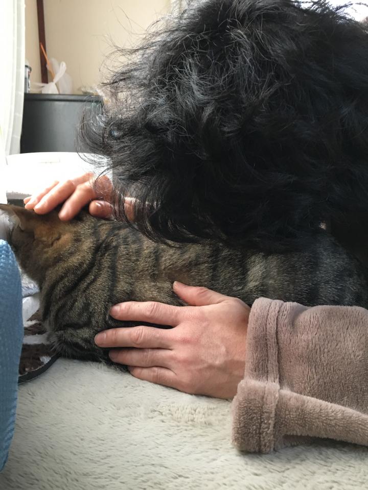 私は遠慮せず、いつでもゲンの体やおでこに自分の顔を付けるのですが、主人や子供達はまだ遠慮があるのか怖いのかやりません😅