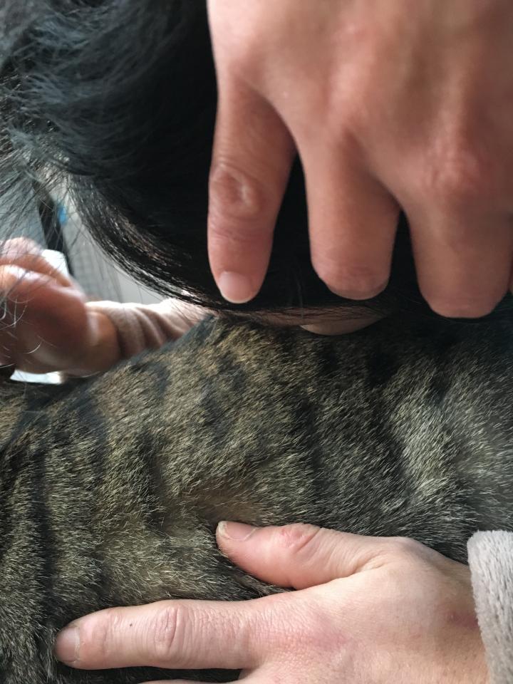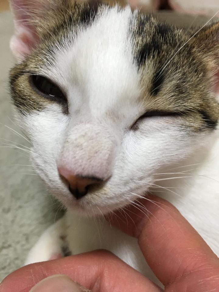 満腹になり、気持ち良くなってナデナデされちゃうミルク。