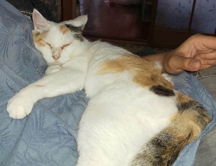食後はヒザへ。乗ったらゴロゴロ。撫でたりブラシをかけるともっとゴロゴロ。