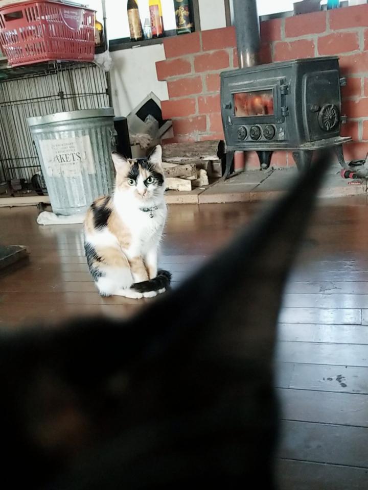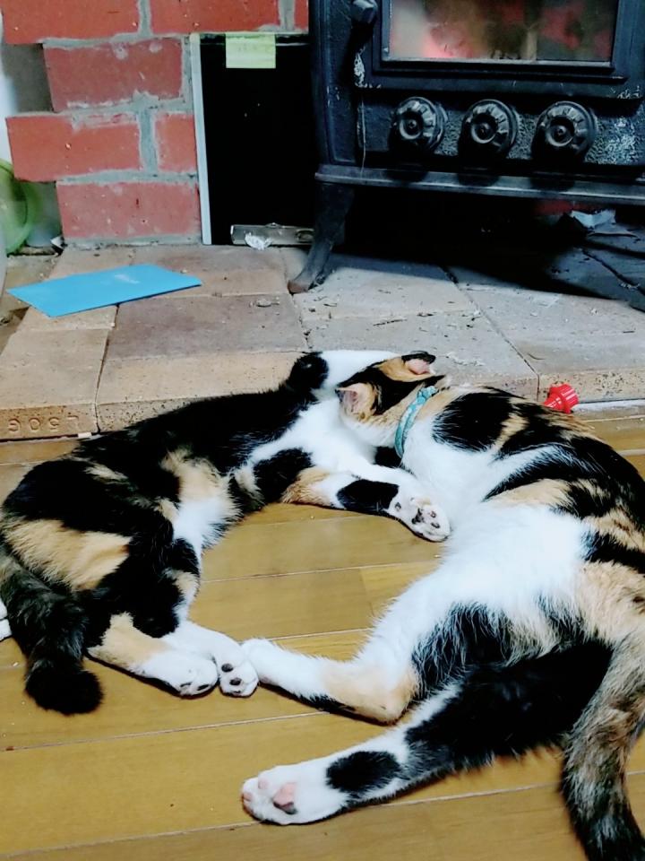 寒くなったので薪ストーブ付けたらずーっと薪ストーブの前陣取ってるっ