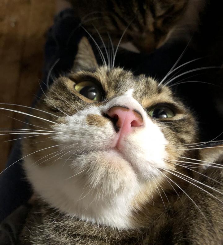 お鼻はピンク色でちょっと茶色の模様がついています。
