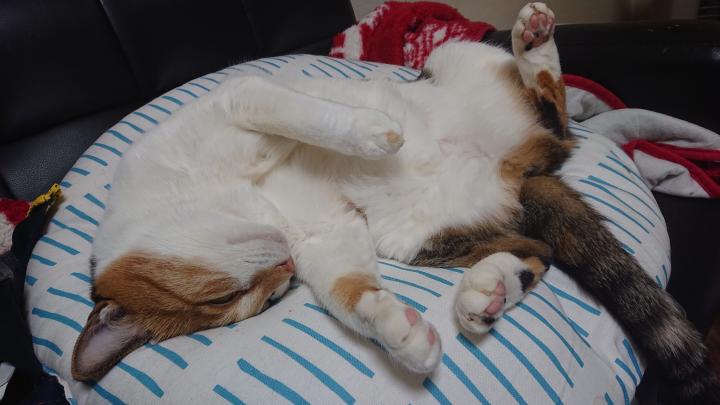 シンクロで寝てました(笑)現在は、ほとんど大きさ、変わらなくなりまして(笑)