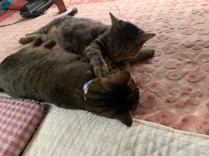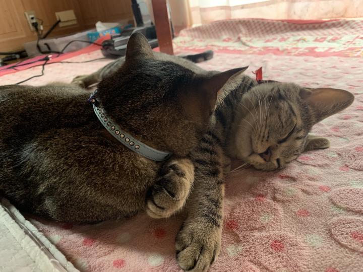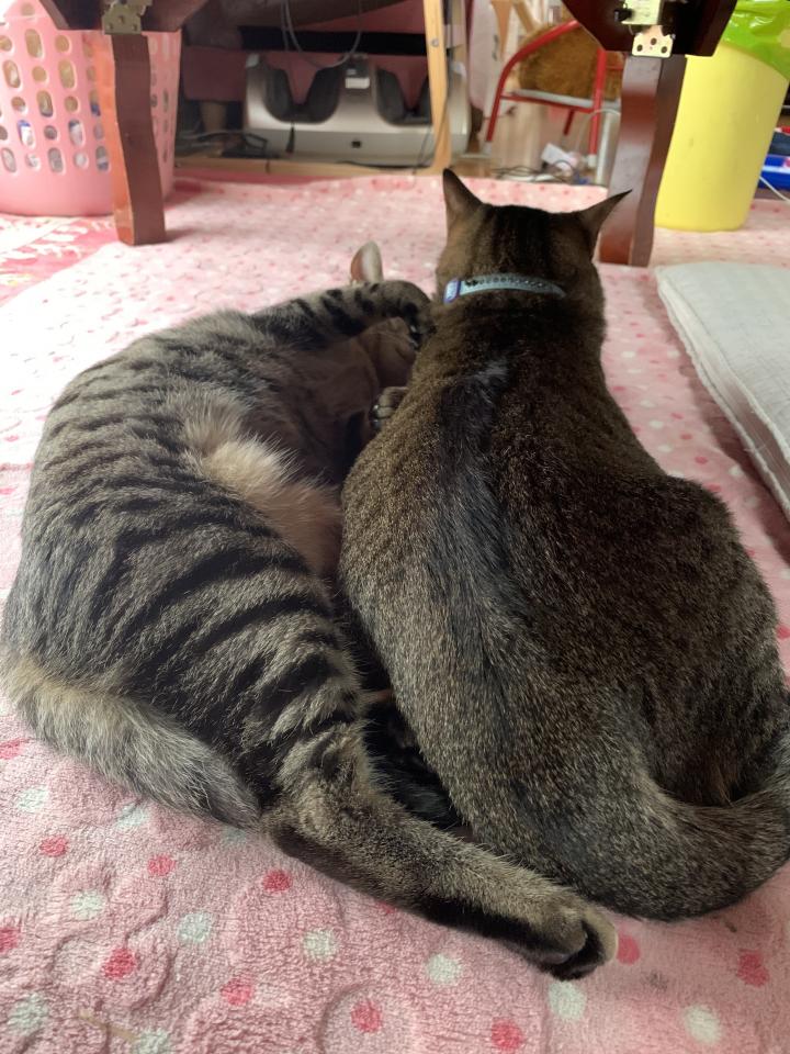 毎日毎日追いかけ回して、追いかけ回されてる2ニャンだけど、日中は仲良しだったのね♡