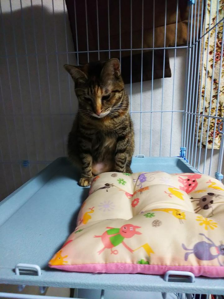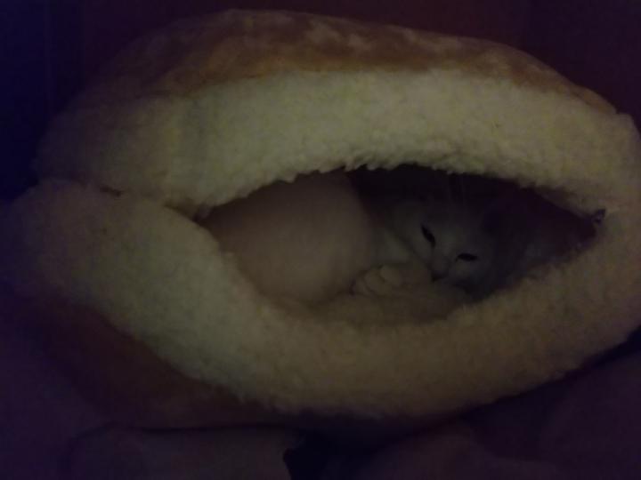 セールで買ったマカロンベッド、押し入れにしまってたら、ちーちゃんが寝てた(^_^)。使ってくれる気がしなかったから、嬉しい…