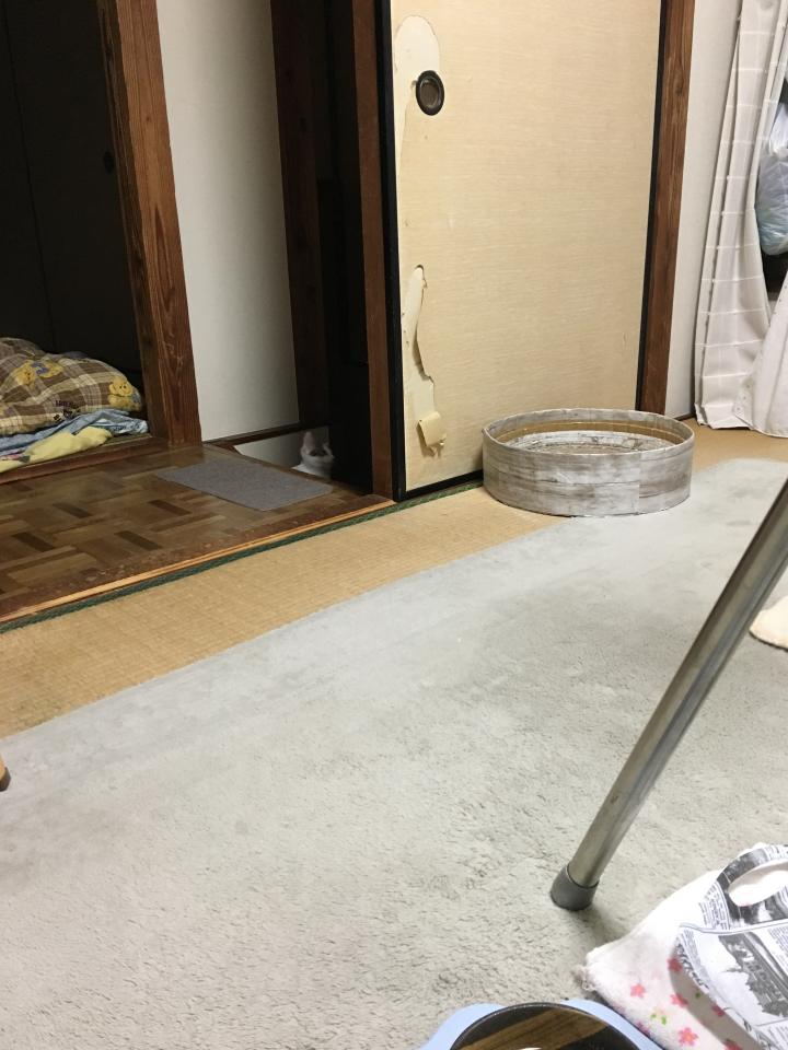 台所にいたらこれまた台所の隅に座り込んで監視(⌒-⌒; )