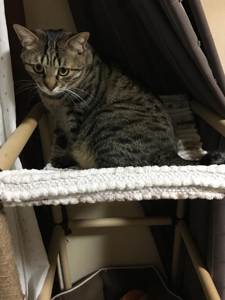 こちらはお父さんの帰りを待ちわび、ニャンモックに乗りながら外を眺める光景笑