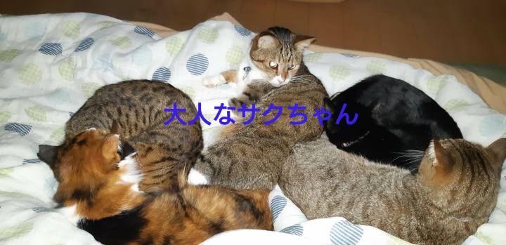 さすがに寒いので無理やり入り込みましたが、そしたら心優しきサクちゃんが空いたスペースに移動してくれました😆