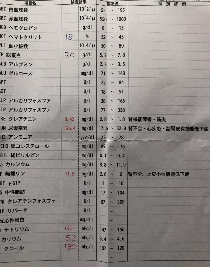 「なんか動きが変だから多分、血液検査の結果は悪いかも」
