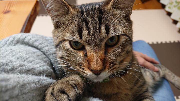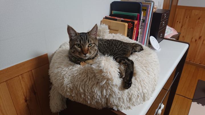 最初は少し警戒中でしたが、この上にのせて少しの間撫でてあげると…
