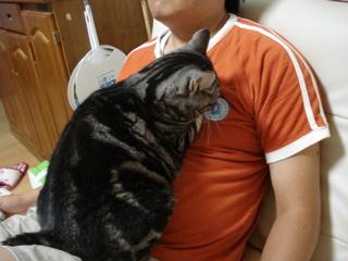 ソファーに座ってテレビを見てれば、のそのそと登ってくるし・・。