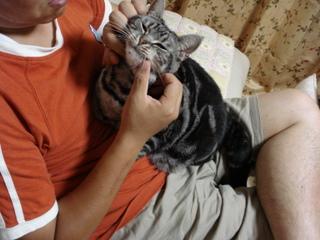 父ちゃんにあごの下をコチョコチョしてもらって、ご満悦♪