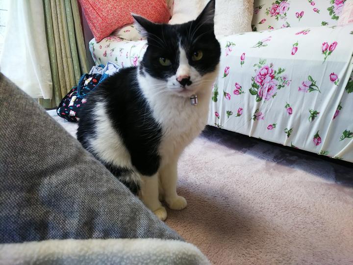 カリン「私もソファーの上は目立つから嫌。忍猫なんだから、隠れられないと。。。 豹柄とか虎柄がいいわ。」