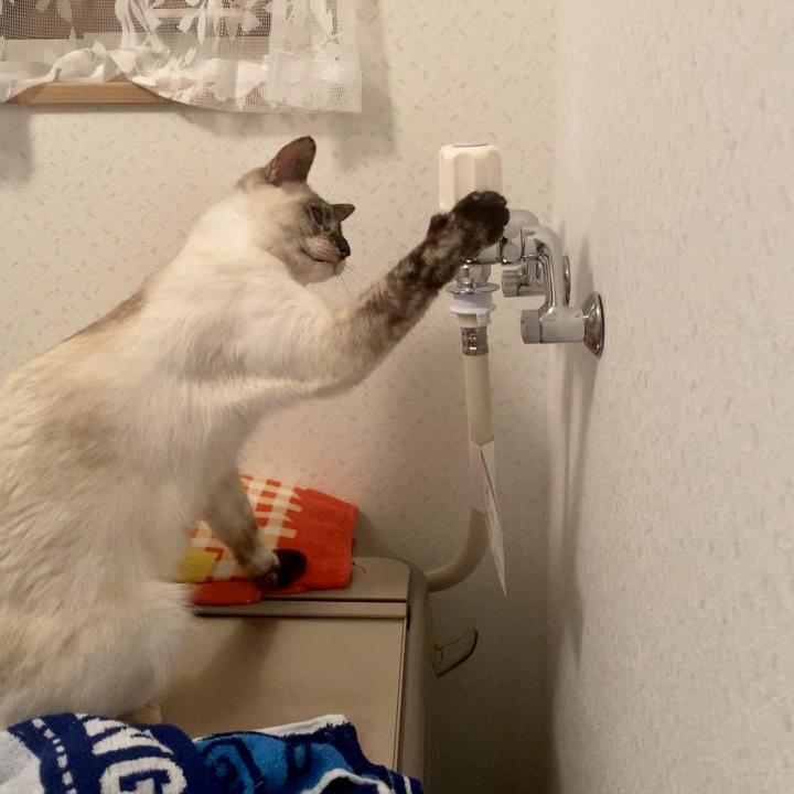 昨日の夜、なにやら楽しそうに洗濯機に乗っかり混合栓と格闘している美鈴🐱