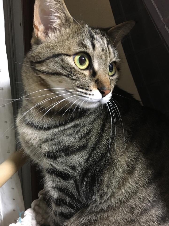 主人の帰宅を待ち侘びている時は一階キャットタワーに居座る様になったゲン。