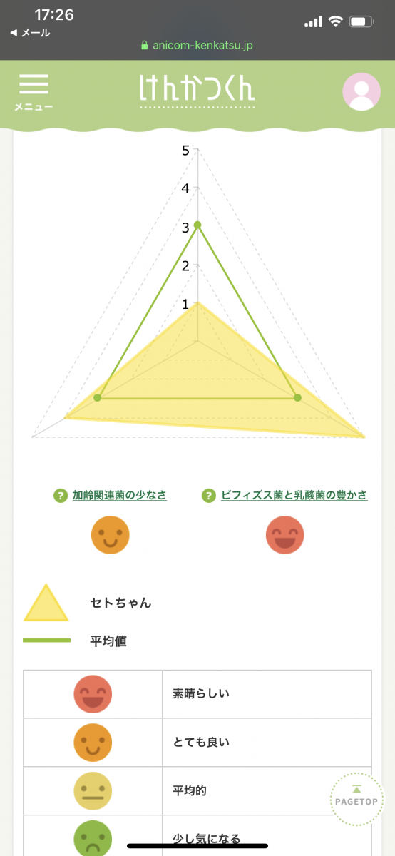 平均値超えとるで!ビフィズス菌等の乳酸菌!!!!