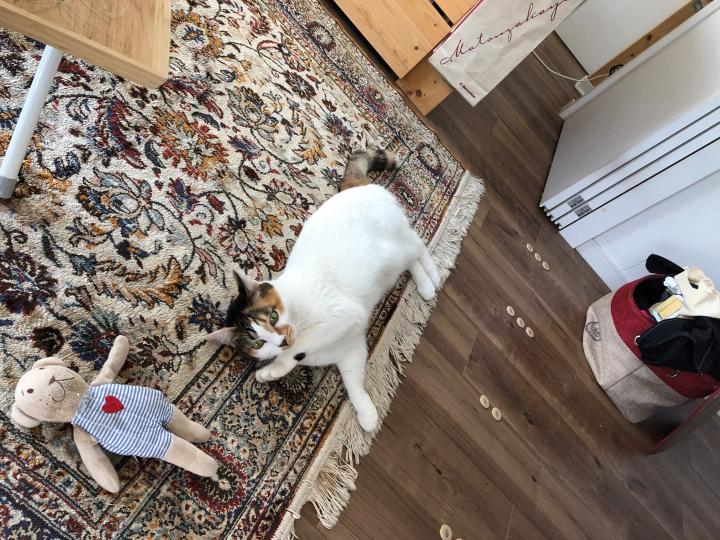 落ちてるハーちゃんを拾って渡すと、ハーちゃんを舐めて愛情表現します。