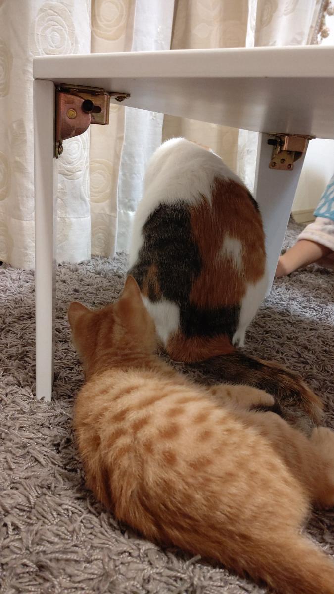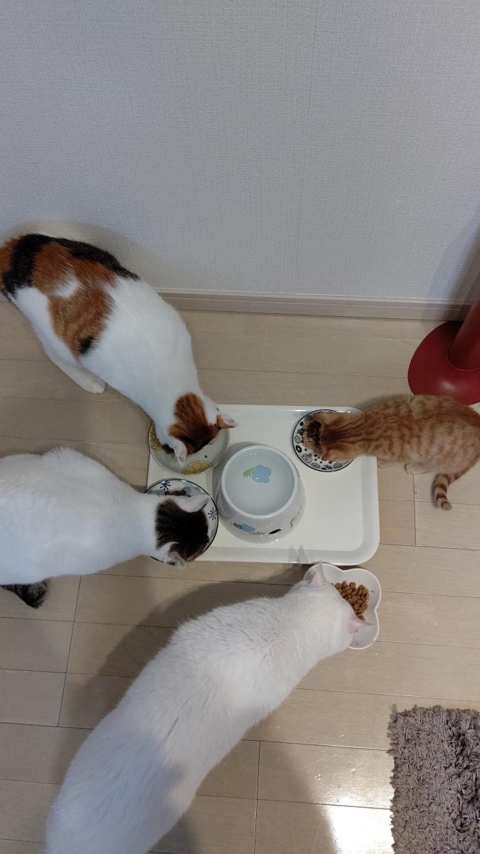 ぶらんのお皿がトレーから出てるのはぶらんは一番のビビりなのでまだ近くでご飯が食べられないから。